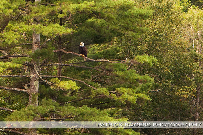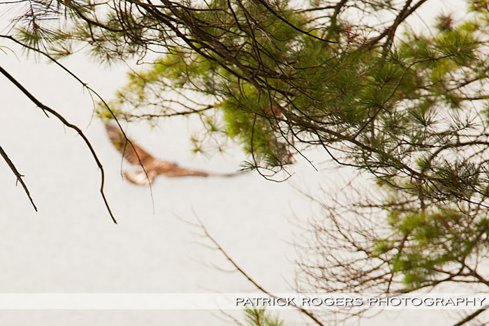 It seems we were not the only ones to appreciate the view there. We were walking up single file with Kerry in front, then she stopped. I looked up just in time to see a juvenile bald eagle (best guess is it’s under a year old), then I brought my camera up. It was set to manual focus and manual exposure, so I was not ready to shoot this beautiful bird. What you see below are the best shots I got, and obviously, they aren’t so good…